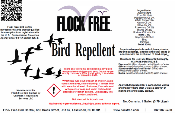 Flock Free Bird Control carries a variety of different liquid products from bird repellents to bio gel cleaning products. All items are top quality and come highly recommended by the staff at Flock Free.